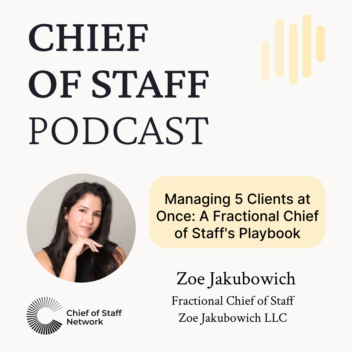 In this episode, Zoe Jakubowich reveals how she manages five clients at once as a fractional Chief of Staff. She shares her systems for context-switching, time-boxing, and the three essential skills every CoS needsβplus tips for building a network-driven business without hard selling. | ![]() |